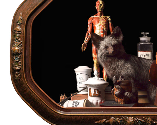 Images are paired with and custom printed for hand-selected and restored antique frames. Each work is unique and will not be available in the same way again; every piece is a whole art object. Each Original Work arrives ready to hang and with a Certificate of Authenticity.