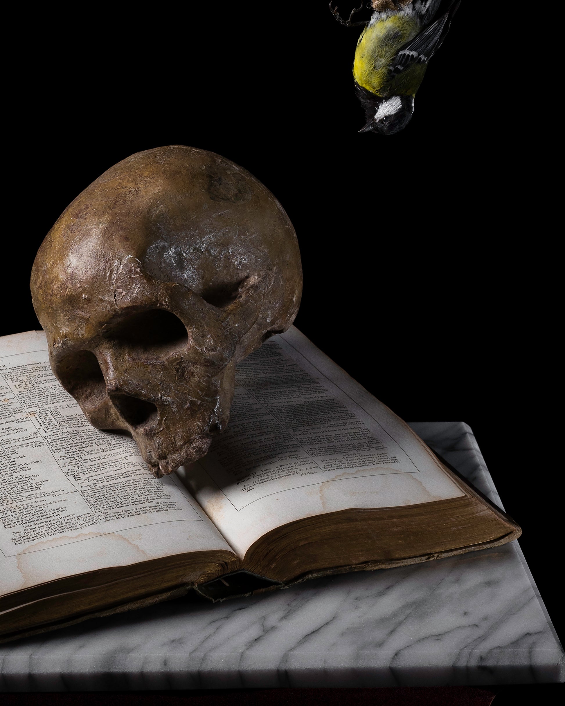 'Brevis' is part of the ongoing Onweacnan series which encompasses works of neovictoriana still life. Onweacnan was inspired by the artistโs preoccupation with our impermanence and the death rituals of cultures across time and the globe. Pulling from the vanitas tradition of seventeenth century Dutch Masters, the work combines contemporary mediums with Renaissance styling to speak to modern viewers of mortality, connection, and encourage inner contemplation.