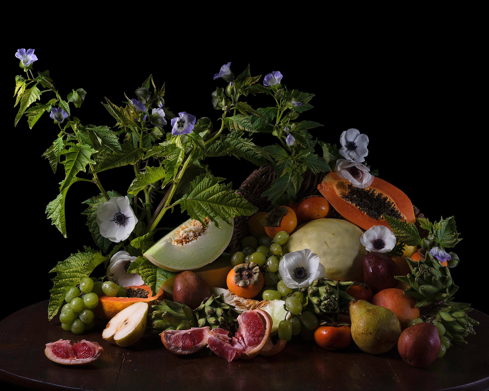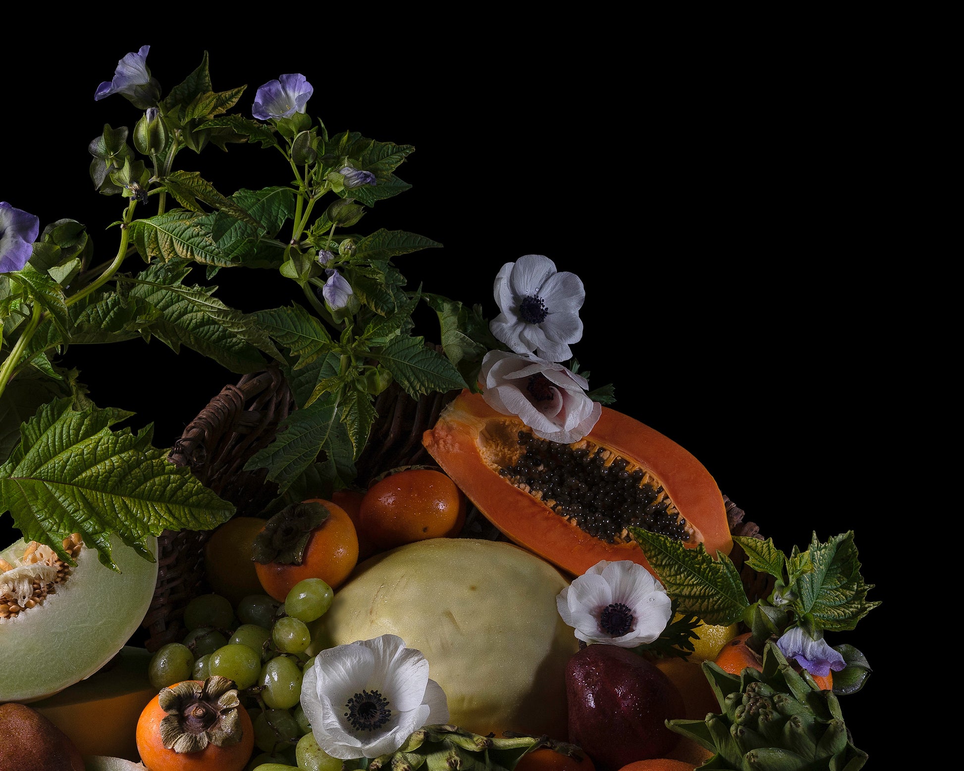 'Copia' is part of the ongoing Onweacnan series which encompasses works of neovictoriana still life. Onweacnan was inspired by the artistโs preoccupation with our impermanence and the death rituals of cultures across time and the globe. Pulling from the vanitas tradition of seventeenth century Dutch Masters, the work combines contemporary mediums with Renaissance styling to speak to modern viewers of mortality, connection, and encourage inner contemplation.