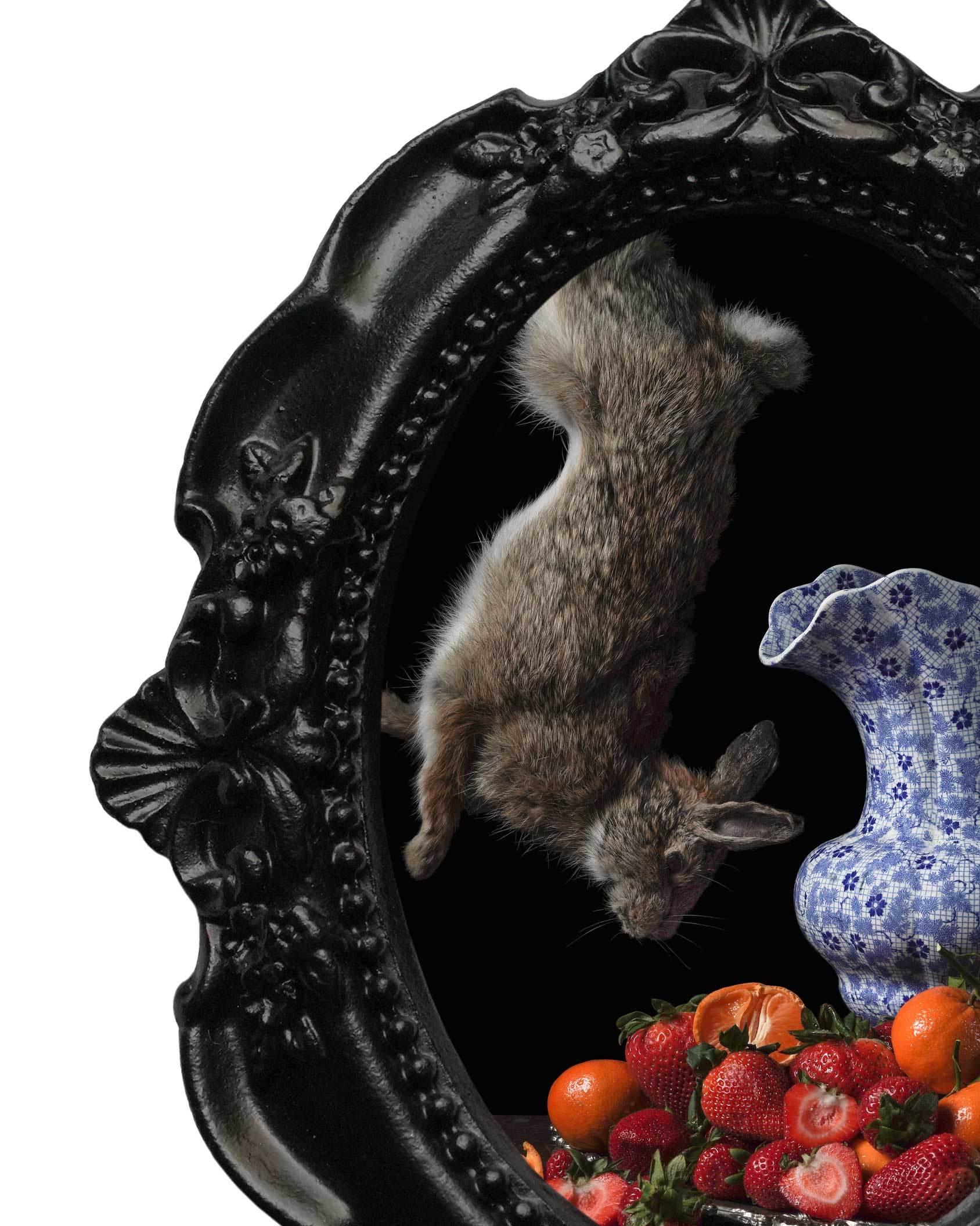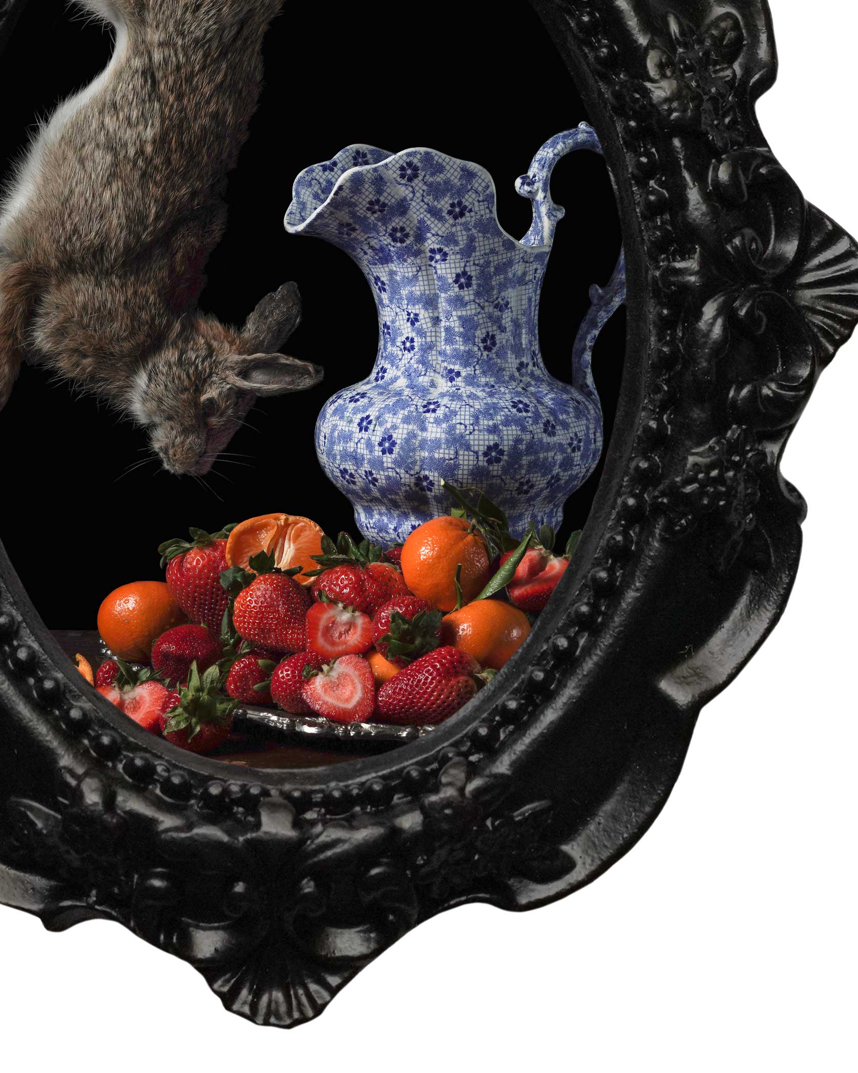 'Cyclus' is a true study in texture and color, with a focus on the soft fur of a rabbit placed alongside the lush, saturated hues and varied skins of fresh fruit. Add the perfect accent to your curio cabinet or shelves with this Mini Frame Print.
