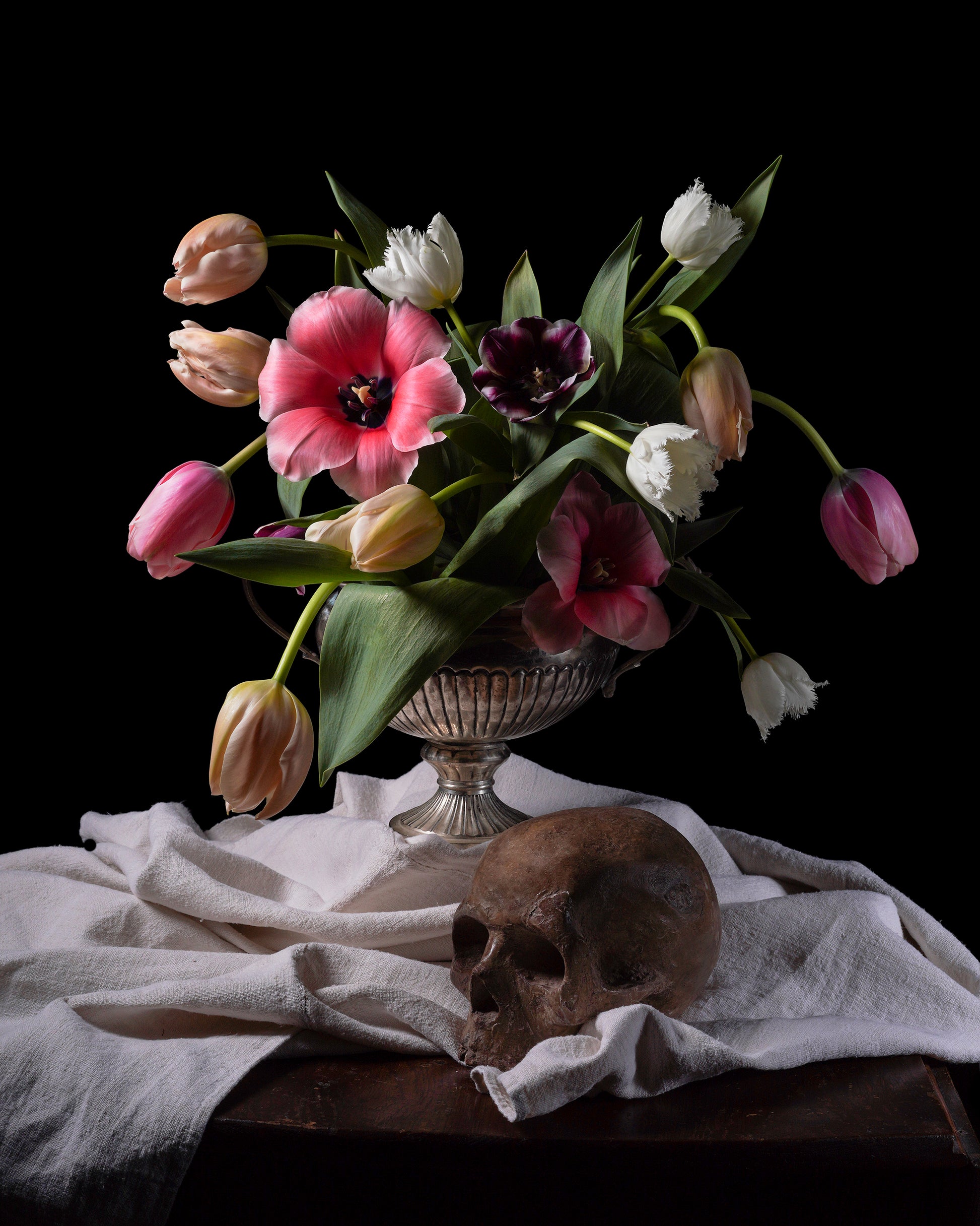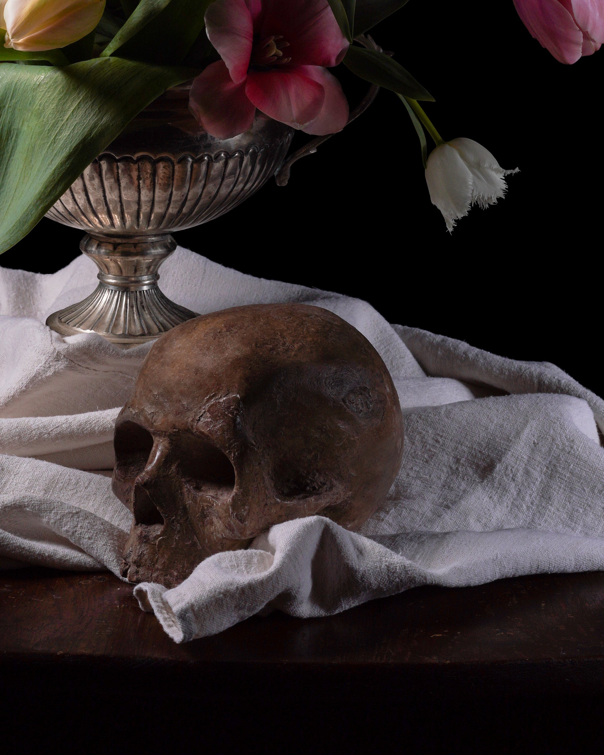 'Dream' is part of the ongoing Onweacnan series which encompasses works of neovictoriana still life. Onweacnan was inspired by the artistโs preoccupation with our impermanence and the death rituals of cultures across time and the globe. Pulling from the vanitas tradition of seventeenth century Dutch Masters, the work combines contemporary mediums with Renaissance styling to speak to modern viewers of mortality, connection, and encourage inner contemplation.