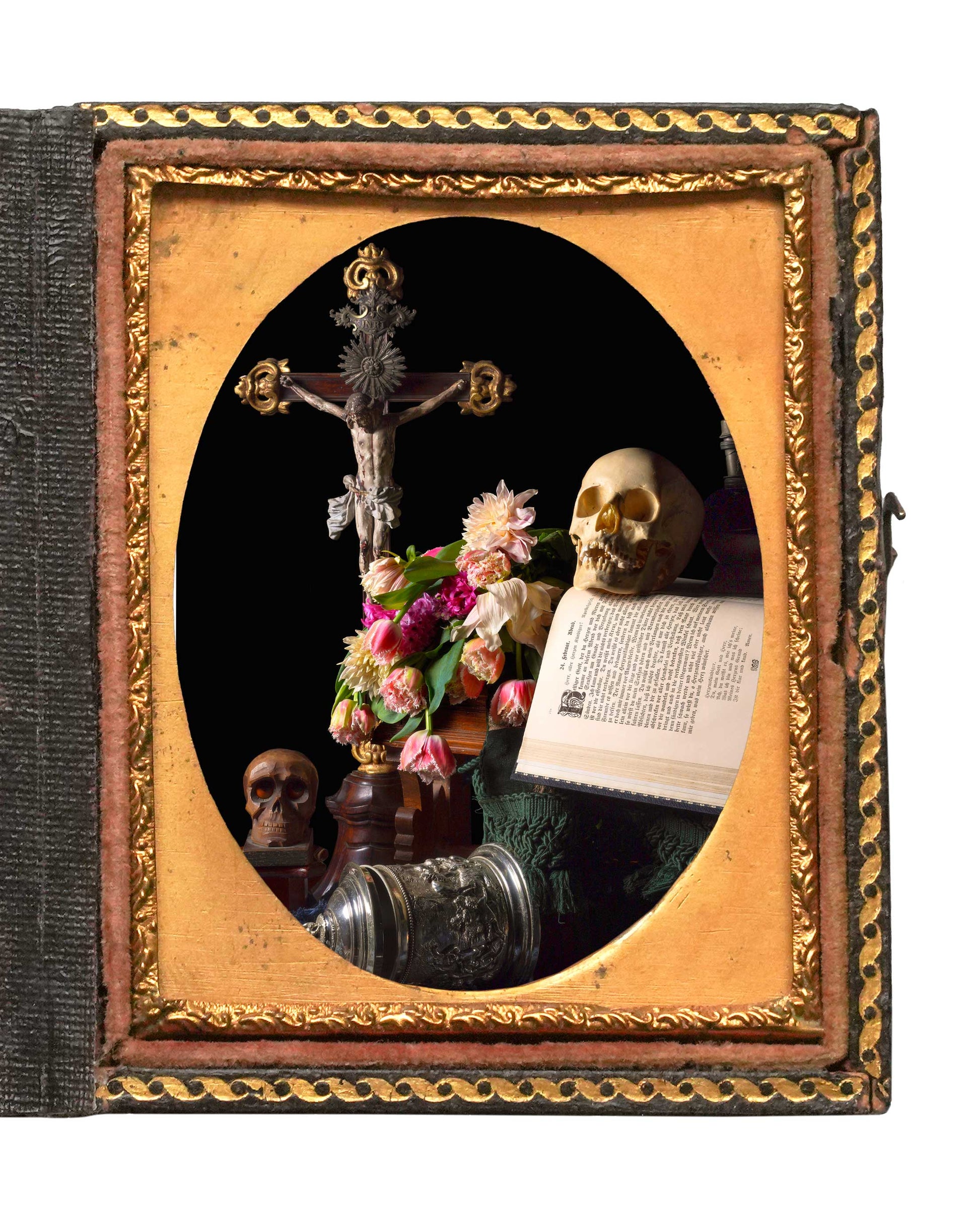 Rooted in rich Baroque allegorical tradition, 'Flēotan' encourages viewers to engage in self-reflection and inner contemplation. Overflowing with iconography and hidden messages, this piece reflects on the transience of life, the futility of earthly pleasures, and the certainty of death. 'Flēotan' is part of the ongoing Onweacnan series which encompasses works of neovictoriana still life.