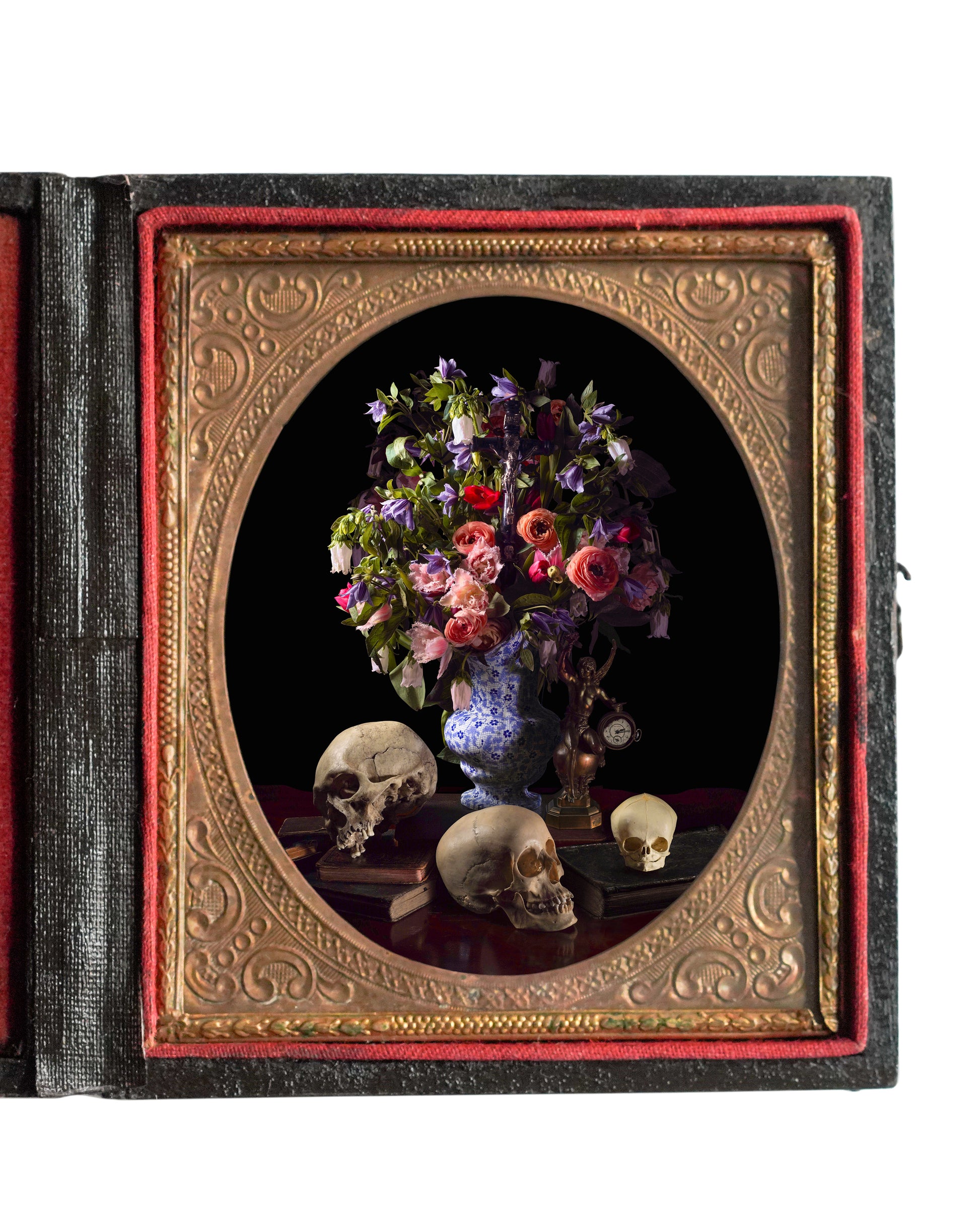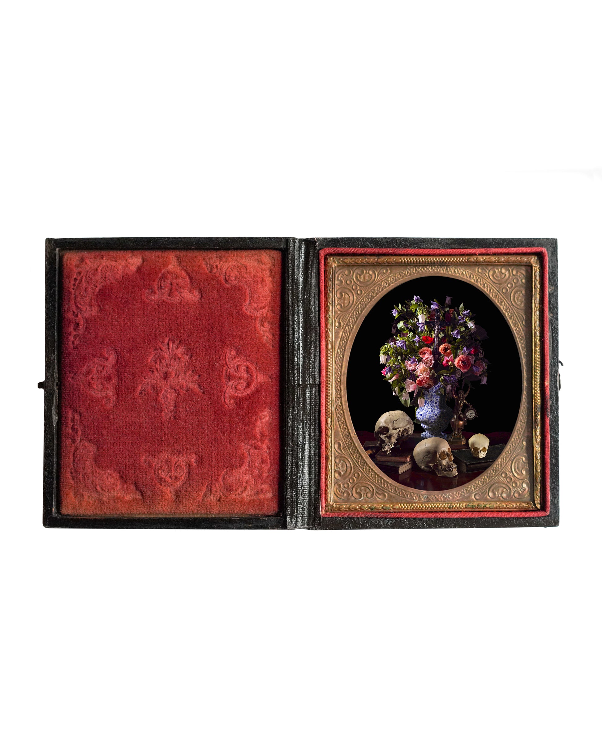 Images are paired with and custom printed for hand-selected and restored antique Union Cases. Each work is unique and will not be available in the same way again; every piece is a whole art object. Each Union Case Work comes with a Certificate of Authenticity.