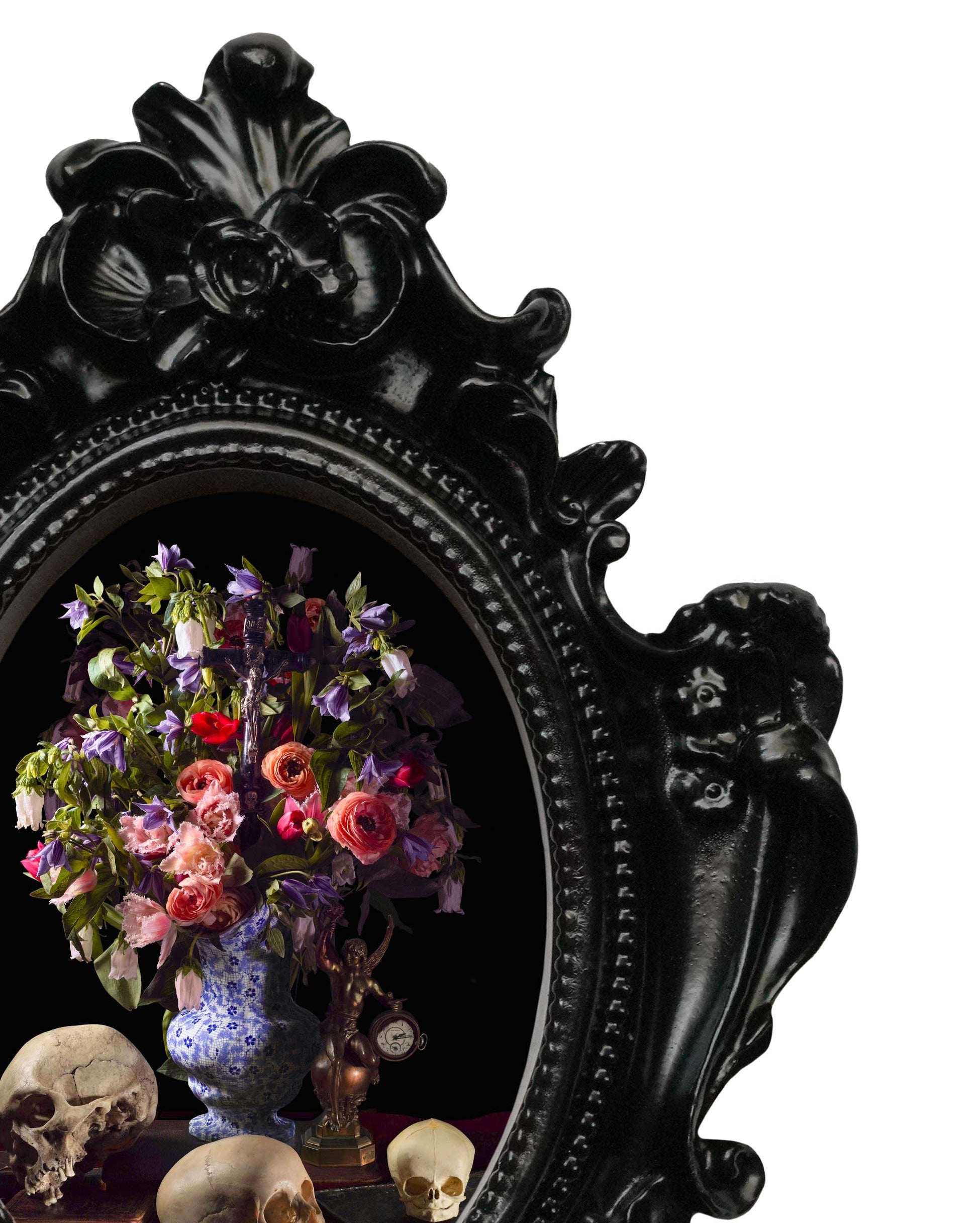This ornate matte black frame features a hand-selected print and has an easel stand for easy tabletop or shelf placement. Prints are protected by a layer of resin, saturating color and highlighting detail.