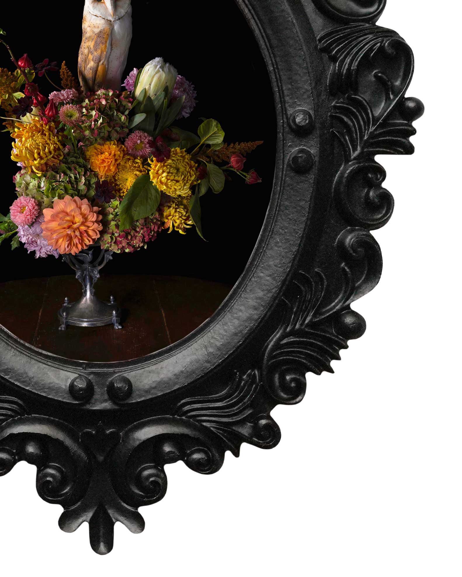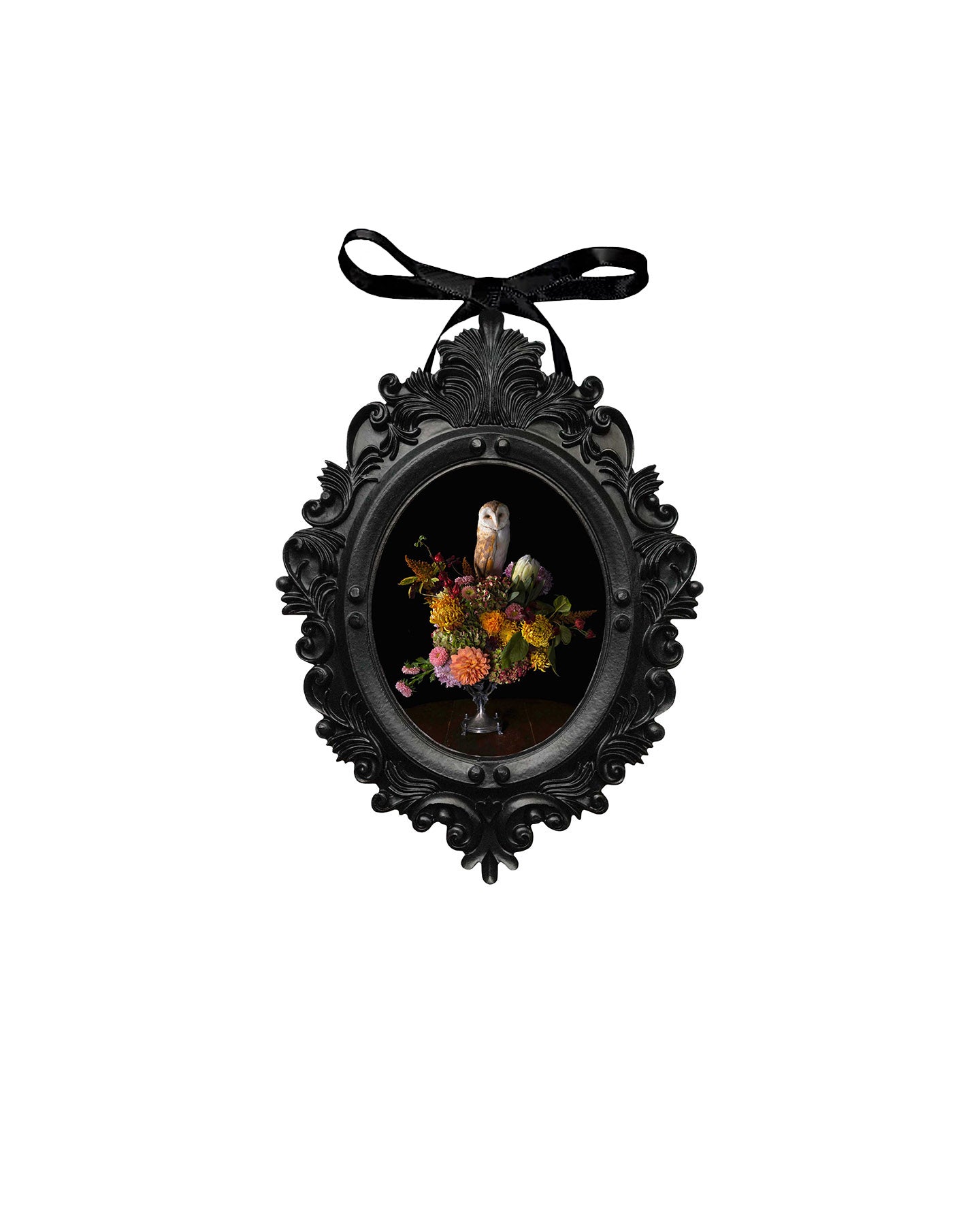 Silent and ghostlike, barn owls are often linked to the supernatural-representing the dead and transformation-, here, acts as a messenger between the terrestrial and spirit world.