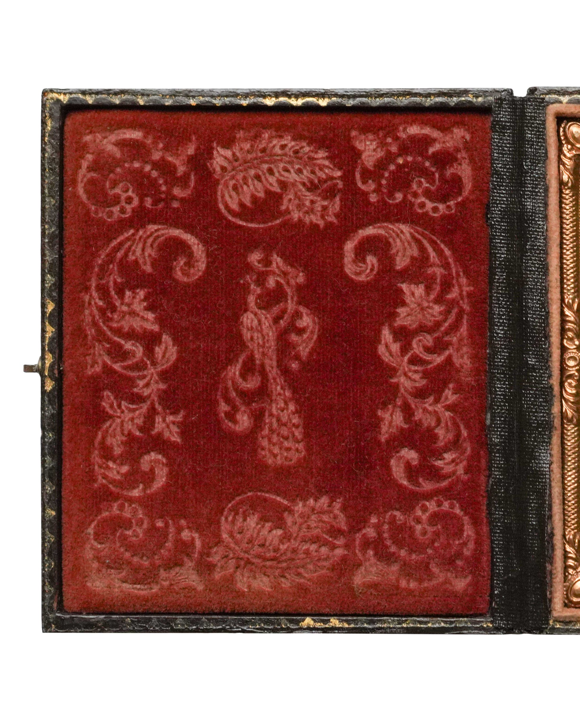 Custom archival print, hand-selected and paired with a restored antique union case from the mid-1800s. Each work is unique and will not be available in the same way again; every piece is a whole art object. These frames are freestanding and are the perfect addition to any curio cabinet and art collection.