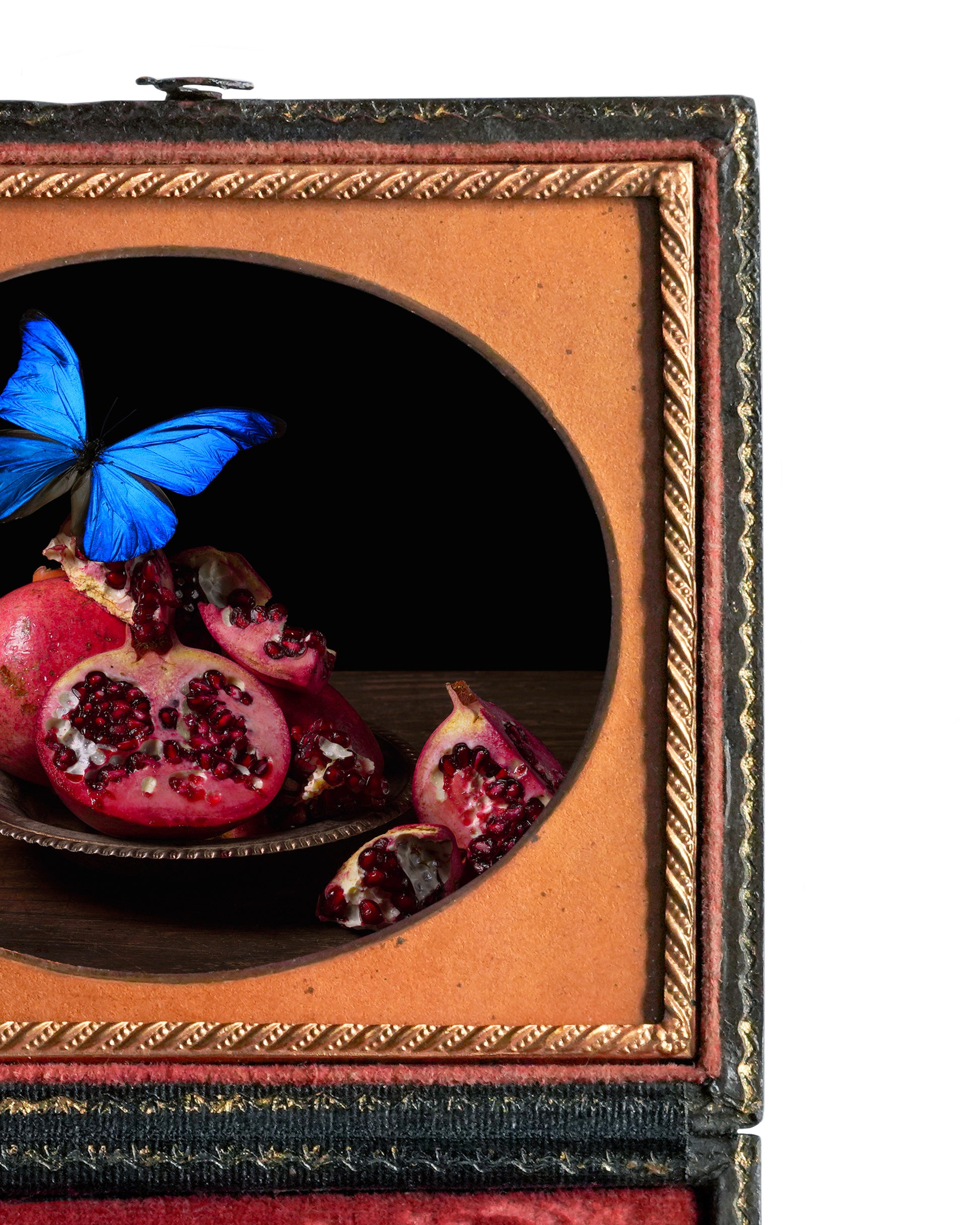 'Visitare' is part of the ongoing Onweacnan series which encompasses works of neovictoriana still life. Onweacnan was inspired by the artist’s preoccupation with our impermanence and the death rituals of cultures across time and the globe. Pulling from the vanitas tradition of seventeenth century Dutch Masters, the work combines contemporary mediums with Renaissance styling to speak to modern viewers of mortality, connection, and encourage inner contemplation.